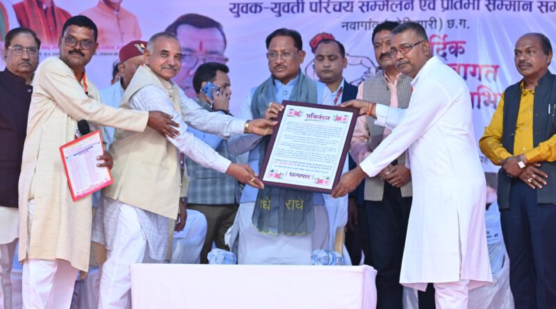 मुख्यमंत्री श्री विष्णु देव साय ने छत्तीसगढ़ कुम्भकार समाज के महाअधिवेशन, युवक-युवती परिचय सम्मेलन और प्रतिभा सम्मान समारोह के सफल आयोजन के लिए बधाई दी।
