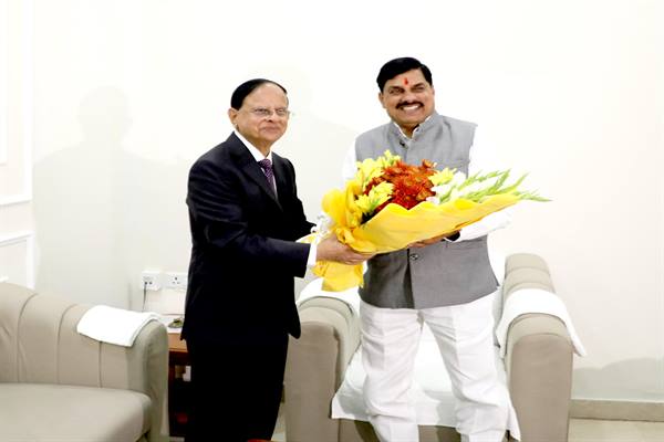 मुख्यमंत्री डॉ. यादव से प्रधानमंत्री के प्रधान सचिव डॉ. मिश्रा ने की सौजन्य भेंट