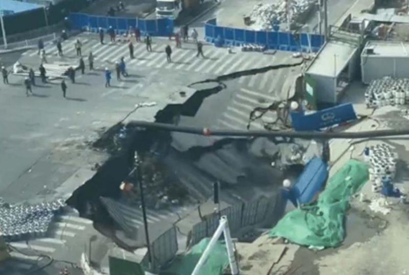 चीन में सड़क धंसी, 20 मीटर चौड़ा गड्ढा बना, पाइपलाइन फटने से हादसा