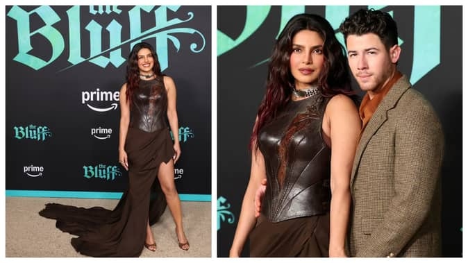 फिल्म ‘द ब्लफ’ के वर्ल्ड प्रीमियर में कलाकार और निर्माता प्रियंका चोपड़ा जोनस और निक जोनस 17 फरवरी, 2026 को लॉस एंजिल्स पहुंचे। प्रियंका और निक की कुछ तस्वीरें और वीडियो सोशल नीडिया पर जमकर वायरल हो रहे हैं।