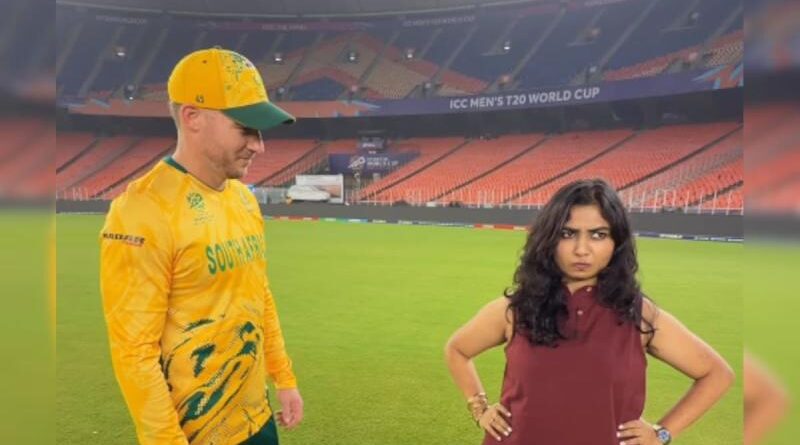 टी20 वर्ल्ड कप 2026 के सुपर-8 मुकाबले में भारत को दक्षिण अफ्रीका के हाथों 76 रन से हार का सामना करना पड़ा। अहमदाबाद में खेले गए इस मैच में डेविड मिलर ने 35 गेंदों पर 63 रन बनाकर टीम को 20 ओवर में 187/7 के मजबूत स्कोर तक पहुंचाया। लक्ष्य का पीछा करते हुए भारतीय टीम 76 रन से पीछे रह गई। मैच के बाद सोशल मीडिया इन्फ्लुएंसर आरजे प्रिंसी पारिख ने मिलर के साथ एक वीडियो पोस्ट किया, जिसमें वह उन्हें घेरते हुए और चारों और घूमते हुए ताली बजाते हुए उन पर तंज जैसा कुछ करती नजर आ रही थीं। वीडियो के कैप्शन में लिखा था, ‘क्या खिलाड़ी हैं डेविड मिलर!’ वहीं वीडियो के अंदर टेक्स्ट था, ‘मुझे लगा था कि हम दोस्त हैं डेविड!’ यह रील तेजी से वायरल हो गई।