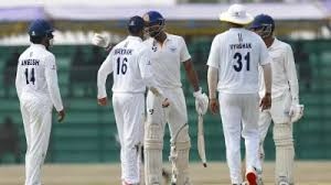 रणजी ट्रॉफी के फाइनल में बड़ा बवाल देखने को मिला है। जम्मू-कश्मीर और कर्नाटक के बीच हुबई में खेले जा रहे इस मुकाबले में तब विवाद बढ़ गया, जब जम्मू-कश्मीर के कप्तान पारस डोगरा ने कर्नाटक के फील्डर को सिर दे मारा। इसके बाद बीच