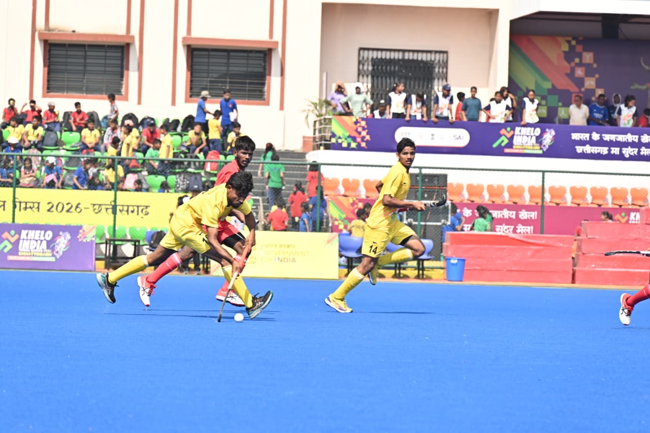 रायपुर. 1 अप्रैल 2026. खेलो इंडिया ट्राइबल गेम्स में आज रायपुर के सरदार वल्लभ भाई पटेल अंतरराष्ट्रीय हॉकी स्टेडियम में पुरुषों की हॉकी में छत्तीसगढ़ और मध्यप्रदेश के बीच तीसरे और चौथे स्थान के लिए मैच खेला गया। इसमें छत्तीसगढ़ ने मध्यप्रदेश को 14-6 से हरा कर कांस्य पदक जीता।