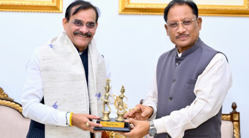 रायपुर, मुख्यमंत्री श्री विष्णु देव साय से आज राजधानी रायपुर स्थित मुख्यमंत्री निवास कार्यालय में लोकसभा सांसद श्री विष्णु दत्त शर्मा ने सौजन्य मुलाकात की। मुख्यमंत्री श्री साय ने श्री शर्मा का आत्मीय स्वागत करते हुए उन्हें शॉल एवं बस्तर आर्ट की आकर्षक प्रतिकृति भेंट कर सम्मानित किया। इस दौरान उनके बीच विभिन्न समसामयिक विषयों पर चर्चा हुई।