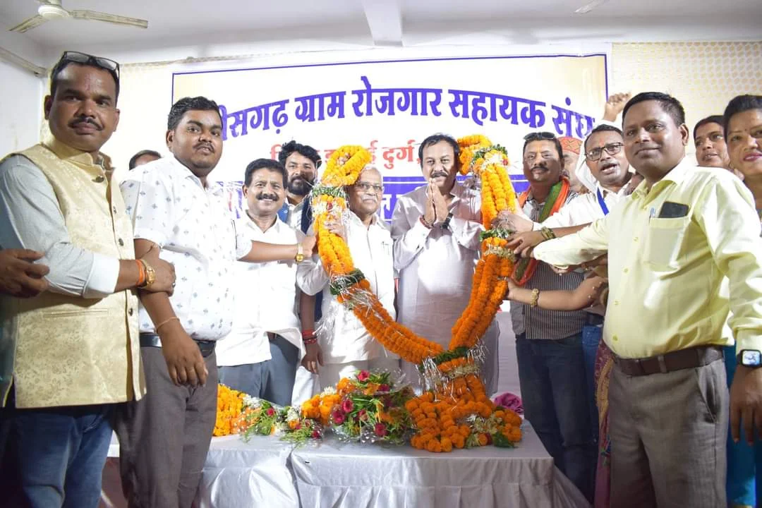 पाटन,जिला स्तरीय नवनिर्वाचित सांसद विधायक सम्मान समारोह एवम मिलन समारोह का आयोजन छग ग्राम रोजगार सहायक संघ जिला इकाई दुर्ग बेमेतरा द्वारा सतनामी आश्रम दुर्ग में रखा गया इस अवसर पर दुर्ग लोकसभा सांसद विजय बघेल मुख्यातिथि के आसंदी में विराजमान हुए उनके स्वागत में पूरा सभा हाल को रोजगार सहायकों द्वारा जय हो विजय हो के नारा से गुंजायमान कर दिया से संबोधित करते हुए कहा ग्राम रोजगार सहायक ग्राम पंचायत में केंद्र और राज्य की योजनाओं का संचालन कर सरकार ओर हितग्राहियों के बीच मुख्य धुरी है।रोजगार सहायक केंद्र और राज्य सरकार के जनकल्याण कारी योजनाओं को लाभार्थियों तक पहुंचाते है जिससे योजनाएं सफल होती है और लोगो को शासन की योजनाओं का लाभ मिल पाता है।ऐसे प्राथमिक कर्मचारियों को मूलभूत मानव संसाधन सुविधाओं के साथ सम्मान जनक वेतनमान मिलना चाहिए इसके लिए शासन स्तर पर सतत बातचीत चल रहा है।और मुख्यमंत्री जी तक रोजगार सहायकों की जायज मांगों को रखा जाएगा।समय के साथ मांगे भी पूरी की जायेगी।कार्यक्रम को संबोधित करते हुए अहीवारा विधायक डोमनलाल कोसेवाड़ा ने रोजगार सहायकों को पंचायत का महत्वपूर्ण कर्मचारी बताते हुए अच्छे वेतनमान के साथ नियमित कर्मचारी के रूप में मान्यता देने की सहमति देते हुए रोजगार सहायकों की मांग को जायज बताते हुए शासन प्रशासन स्तर पर सहयोग करने हेतु आश्वस्त किया।