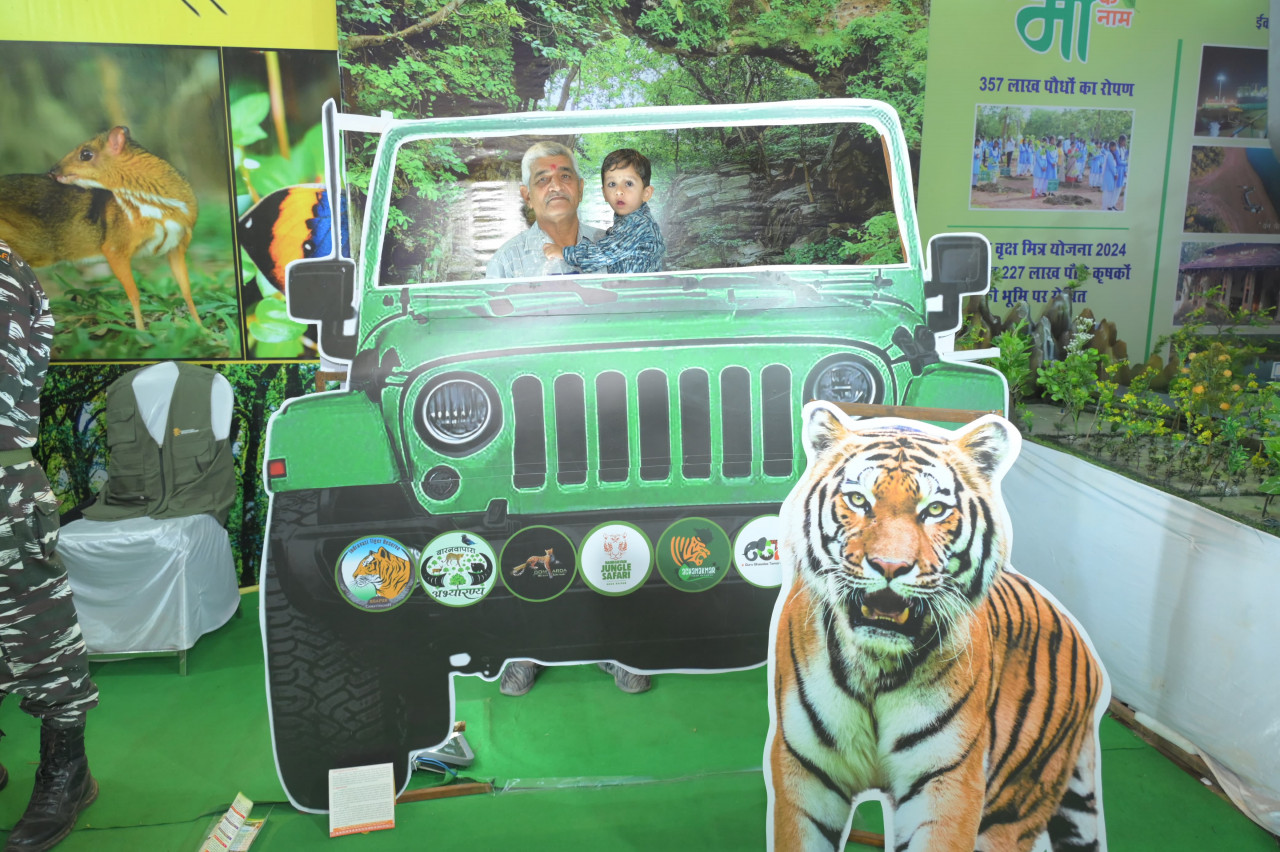 वन्यप्राणी प्रभाग के द्वारा छत्तीसगढ़ राज्य में बाघों की संख्या, वन्यजीव संरक्षण के लिए वन विभाग द्वारा किए जा रहे प्रयासों के संबंध में वीडियो, मानव-वन्यप्राणी सह अस्तित्व के संबंध में प्रतिरूप तथा एक आकर्षक सेल्फी पॉइंट बनाया गया है। संजीवनी स्टाल में छत्तीसगढ़ लघु वनोपज संघ के द्वारा बनाये जा रहे विभिन्न प्रकार के हर्बल एवं खाद्य उत्पादों को प्रदर्शित एवं विक्रय किया जा रहा है। वन विभाग के द्वारा चलाए जा रहे इकोटूरिज्म एवं रोजगार मूलक कार्याे एवं देवगुड़ी को प्रदर्शित करने हेतु एक प्रतिरूप का निर्माण किया गया है। छत्तीसगढ़ आदिवासी स्थानीय स्वास्थ्य परंपरा एवं औषधि पादप बोर्ड के द्वारा वनों में पाए जाने के विभिन्न प्रकार के औषधीय पौधों एवं उनके गुण एवं उनकी कृषिकरण संबंधित जानकारी प्रदर्शित की गई है। इसी तरह संयुक्त वन प्रबंधन के द्वारा वनवासियों को स्वरोजगार हेतु प्रेरित करने के लिए बनाये गए स्टाल में विभिन्न वन प्रबंधन समितियों के द्वारा बनाये गए उत्पाद जैसे सीताफल आइसक्रीम, रबड़ी, जामुन जूस, विष्णुभोग चावल इत्यादि को प्रदर्शन एवं विक्रय हेतु उपलब्ध कराया गया है।