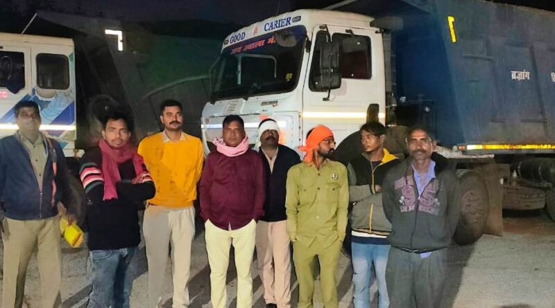 गोबरा नवापारा में पांच हाईवा जब्त : रेत के अवैध परिवहन के मामले में खनिज विभाग की कार्रवाई
