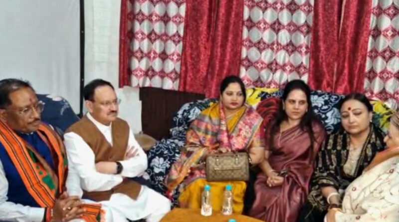 रायपुर : द्रीय स्वास्थ्य मंत्री श्री जेपी नड्डा ने अपने एक दिवसीय रायपुर प्रवास के दौरान पूर्व राज्यसभा सदस्य स्वर्गीय श्री गोपाल व्यास के निवास पर परिवार के सदस्यों से मुलाकात कर अपनी संवेदनाएं प्रकट की। मुख्यमंत्री श्री विष्णु देव साय और उप मुख्यमंत्री श्री विजय शर्मा भी उनके साथ थे।