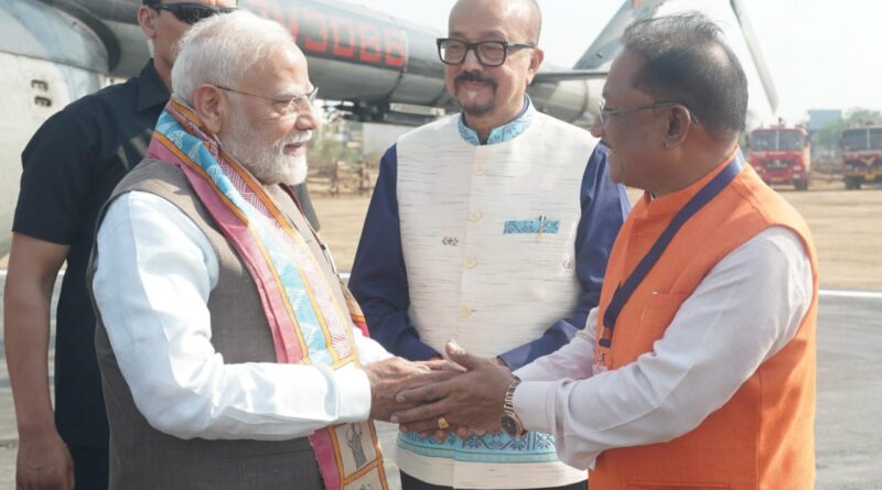 मुख्यमंत्री श्री विष्णुदेव साय ने प्रधानमंत्री श्री नरेंद्र मोदी का हेलीपैड में किया आत्मीय स्वागत