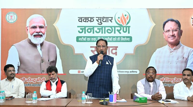 ***मुख्यमंत्री ने वक्फ सुधार जनजागरण कार्यक्रम को किया संबोधित: कहा – सभी सम्मिलित प्रयास कर वक्फ संशोधन कानून की भ्रांतियों को करें दूर*रायपुर, 07 मई 2025//वक्फ संशोधन कानून मुस्लिम समाज के खिलाफ नहीं, बल्कि उनके हित में है। हम सभी का सम्मिलित प्रयास और उद्देश्य होना चाहिए कि वक्फ कानून को लेकर समाज में किसी भी प्रकार का भ्रम न फैले। सभी को वास्तविकता को समझना चाहिए और दूसरों को भी इसकी जानकारी देनी चाहिए। वक्फ संशोधन कानून को लेकर देशभर में जनजागरण अभियान चलाया जा रहा है, और इसी कड़ी में आज मुख्यमंत्री श्री विष्णु देव साय ने अपने निवास कार्यालय में आयोजित वक्फ सुधार जनजागरण कार्यक्रम में यह बात कही।मुख्यमंत्री श्री साय ने कहा कि वक्फ बोर्ड संशोधन अधिनियम मुस्लिम समुदाय के हितों की रक्षा हेतु एक महत्वपूर्ण कदम उठाया गया है। उन्होंने कहा कि वक्फ बोर्ड का गठन बहुत ही पुनीत उद्देश्य के साथ किया गया था, ताकि मुस्लिम समाज, विशेषकर गरीब वर्ग और पसमांदा मुसलमानों को लाभ मिल सके। लेकिन विगत वर्षों में कुछ रसूखदार लोगों ने इस कानून का लाभ उठाकर अपना स्वार्थ सिद्ध किए, जिससे गरीब मुसलमान अपने अधिकारों से वंचित रह गए।श्री साय ने कहा कि हमारे प्रधानमंत्री श्री नरेंद्र मोदी ने ‘विकसित भारत’ का जो लक्ष्य रखा है, उसे प्राप्त करने में सभी देशवासियों की भूमिका आवश्यक है। यदि कोई भी वर्ग पीछे छूटता है, तो हम अपना संकल्प पूर्ण नहीं कर पाएंगे।आदिम जाति एवं अनुसूचित जाति विकास मंत्री श्री रामविचार नेताम ने कहा कि हमारी सरकार सभी के हितों की चिंता करती है। वक्फ कानूनों में हुए संशोधनों का उद्देश्य मुस्लिम समाज को सशक्त बनाना है। अब वक्फ संपत्तियों की आमदनी का एक-एक पाई का लेखा-जोखा रखा जाएगा और यह राशि समाज के लोगों की भलाई, उनकी शिक्षा और जीवन स्तर को ऊंचा उठाने में उपयोग की जाएगी।इस अवसर पर विधायक श्री किरण देव, वक्फ बोर्ड के चेयरमैन डॉ. सलीम राज, आदिम जाति एवं अनुसूचित जाति विकास विभाग के प्रमुख सचिव श्री सोनमणि बोरा, वक्फ बोर्ड के सीईओ डॉ. एस. एफ. फारूकी एवं मुस्लिम समाज के अनेक प्रबुद्धजन उपस्थित थे।