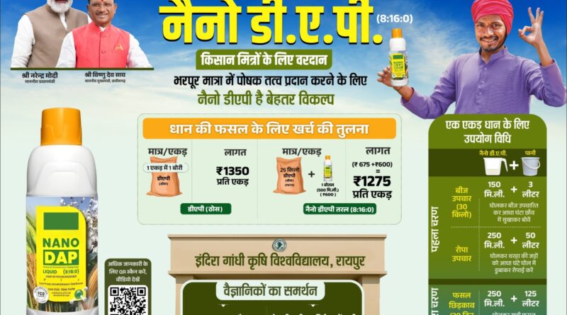 **रायपुर, 08 जुलाई 2025/ छत्तीसगढ़ सरकार किसानों को रासायनिक उर्वरकों की निर्बाध आपूर्ति सुनिश्चित करने के लिए लगातार प्रयासरत है। खरीफ 2025 के दौरान डीएपी (डाय-अमोनियम फॉस्फेट) की कमी को ध्यान में रखते हुए राज्य शासन ने इसके व्यवहारिक विकल्प के रूप में नैनो डीएपी के भंडारण एवं वितरण की विशेष व्यवस्था की है। इसके साथ ही एनपीके और एसएसपी जैसे वैकल्पिक उर्वरकों का भी लक्ष्य से अधिक मात्रा में भंडारण कराया गया है। खेती में ठोस डीएपी उर्वरक की कमी को पूरा करने के लिए किसानों को उसके विकल्प के अनुरूप कृषि वैज्ञानिकों के सुझाव के अनुरूप नैनो डीएपी अथवा एनपीके और सिंगल सुपर फास्फेट खाद की मात्रा का उपयोग करने की सलाह दी जा रही है। नैनो डीएपी एक आधुनिक, किफायती और प्रभावशाली तरल उर्वरक है, जो पारंपरिक डीएपी की तुलना में कहीं अधिक उपयोगी और पोषक तत्वों से भरपूर है। इंदिरा गांधी कृषि विश्वविद्यालय, रायपुर के वैज्ञानिकों ने नैनो डीएपी का समर्थन करते हुए कहा है कि इसके उपयोग से खेती की लागत में कमी आती है। नैनो डीएपी खेत में पोषण की कमी को प्रभावी ढंग से पूरा करता है और उत्पादन की गुणवत्ता को भी बढ़ाता है। नैनो डीएपी पर्यावरण के लिए भी सुरक्षित है। एक एकड़ धान की फसल के लिए एक बोरी ठोस डीएपी का उपयोग होता है। जिसकी लागत 1350 रूपए होती हैै, जबकि एक एकड़ में 25 किलो ठोस डीएपी और 500 मिली नैनो डीएपी के मिश्रण का उपयोग किया जाए तो इसकी लागत घटकर 1275 रूपए आती है। इंदिरा गांधी कृषि विश्वविद्यालय के कृषि वैज्ञानिकों ने एक एकड़ धान की खेती के लिए नैनो डीएपी की उपयोग की विधि की विस्तार से जानकारी दी है। इसके अनुसार नैनो डीएपी की मात्र साढ़े 600 मिली मात्रा एक एकड़ धान की खेती में लगती है। धान की बुआई से पहले एक एकड़ के लिए 30 किलो बीज को 150 मिली नैनो डीएपी को तीन लीटर पानी में घोलकर उसमें बीज उपचारित कर आधा घंटा छाव में सुखाने के बाद बुआई की जाती है। रोपा के समय 50 लीटर पानी में 250 मिली नैनो डीएपी को मिलाकर उसमें थरहा की जड़ों को आधा घंटा डूबाकर रखने के बाद रोपाई तथा फसल बोआई के तीस दिन बाद 125 लीटर पानी में 250 मिली नैनो डीएपी को घोलकर खड़ी फसल पर इसका छिड़काव करना होता है। इससे फसलों को पोषक तत्व मिल जाते है। नैनो डीएपी फसलों को भरपूर मात्रा में पोषक तत्व प्रदान करने के लिए बेहतर विकल्प है। यह पारंपरिक डीएपी के मुकाबले लागत कम और प्रभाव अधिक है। पारंपरिक डीएपी की एक बोरी की कीमत लगभग 1350 रूपए होती है, वहीं नैनो डीएपी की एक बोतल से कई एकड़ भूमि को लाभ पहुंचाया जा सकता है। यह स्प्रे के माध्यम से सीधे पौधों पर छिड़का जाता है, जिससे पोषक तत्वों का त्वरित अवशोषण होता है।मुख्यमंत्री श्री विष्णु देव साय के निर्देश के अनुरूप राज्य शासन