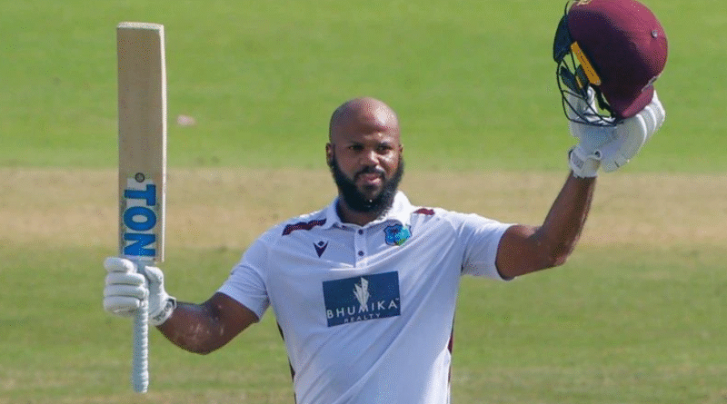 भारत की धरती पर 23 साल बाद वेस्टइंडीज ओपनर का शतक, अनोखे अंदाज में छक्का लगाकर बनाई सेंचुरी